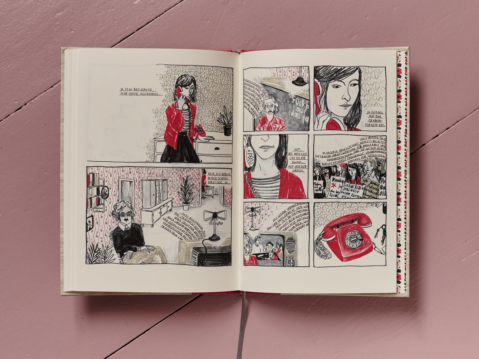 "Die Geschichte beginnt 1970, Rita und Günther haben eine kleine Tochter bekommen und Rita „funktioniert” noch ohne Murren als Haus-, Ehefrau und Mutter. Wenige Jahre später, als die Kleine in den Kindergarten kommt, regt sich aber bei Rita zaghafter Widerstand gegen die eingespielte Rollenverteilung und auch gegen einen Ehemann, der es sich bequem eingerichtet hat in seiner Rolle und so gar kein Verständnis für ihr Streben nach Selbstverwirklichung hat. Außerdem, sollen die Nachbarn denken, er verdiene nicht genug, wenn Rita arbeiten geht?" (jaja-Verlag)