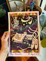 Guache-Farbe auf Papier / individuelles Motiv (Themenwunsch bei Bestellung bitte angeben -drei Stichworte - keine Portraits) / A4 / mit Name und Datum (Geburt, Hochzeit, Taufe, Verlobung...) / bis zu 14 Tagen Anfertigungszeit / Lieferung ohne Rahmen